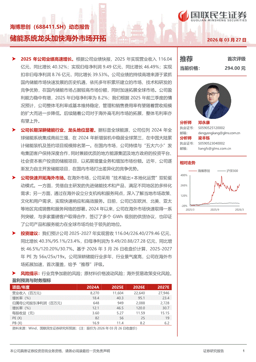 海博思创:国联民生证券-海博思创-688411-动态报告:储能系统龙头加快海外市场开拓-260327