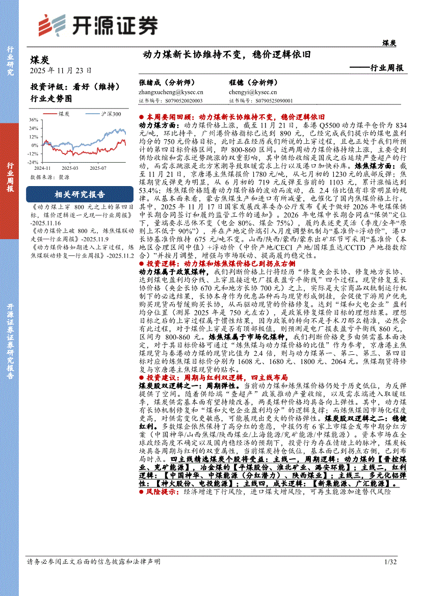 煤炭行业:开源证券-煤炭行业周报:动力煤新长协维持不变,稳价逻辑依旧-251123