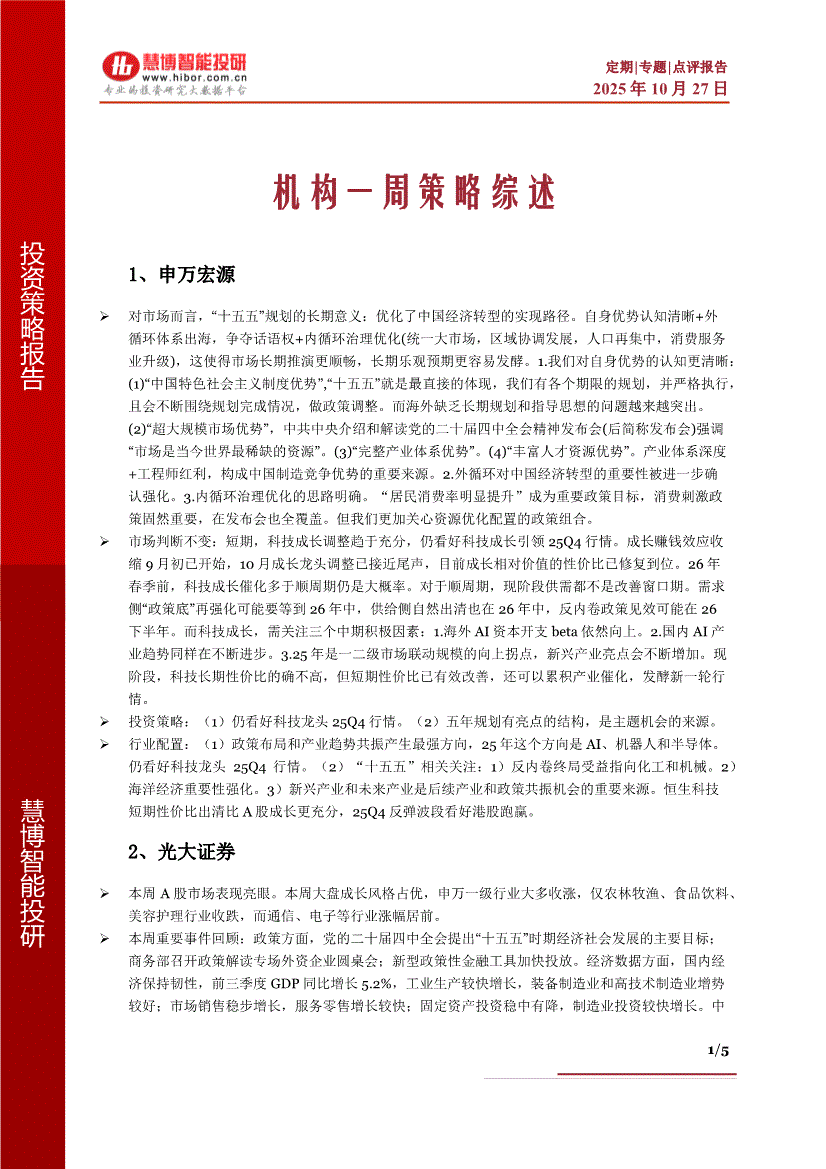 慧博智能投研-慧博研报炼金之研报头条精华:以我为主,围绕“十五五”战略性布局-251027