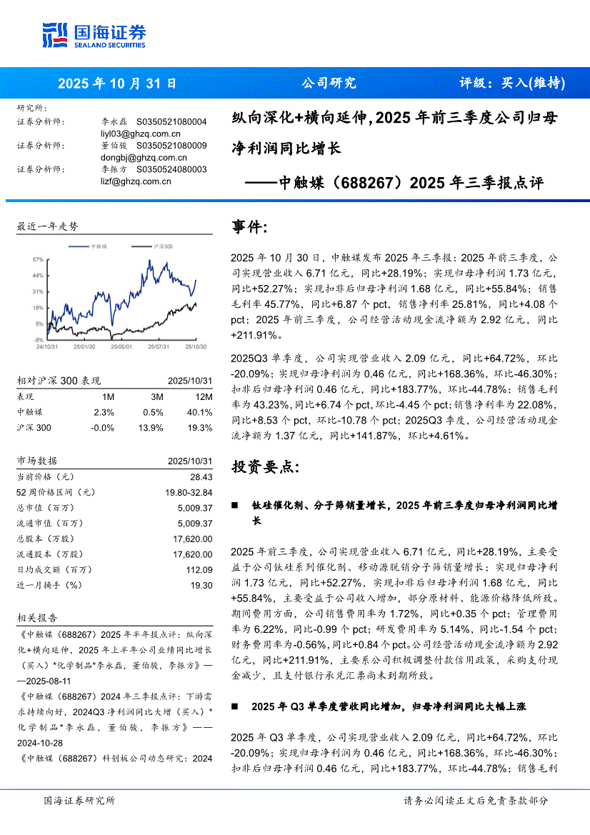 中触媒:国海证券-中触媒-688267-2025年三季报点评:纵向深化+横向延伸,2025年前三季度公司归母净利润同比增长-251031