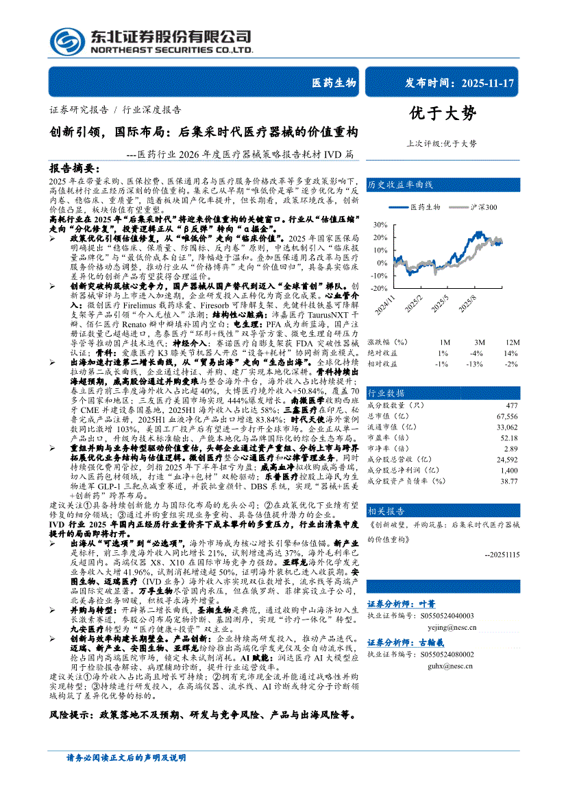 医药行业:东北证券-医药行业2026年度医疗器械策略报告耗材IVD篇:创新引领,国际布局,后集采时代医疗器械的价值重构-251117