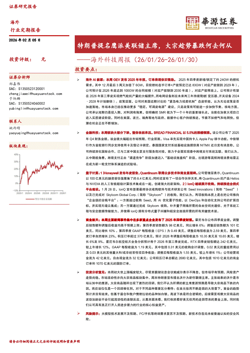 科技行业:华源证券-海外科技行业周报:特朗普提名鹰派美联储主席,大宗趁势暴跌何去何从-260205