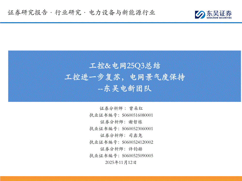 电力设备与新能源行业:东吴证券-电力设备与新能源行业工控&电网25Q3总结:工控进一步复苏,电网景气度保持-251112