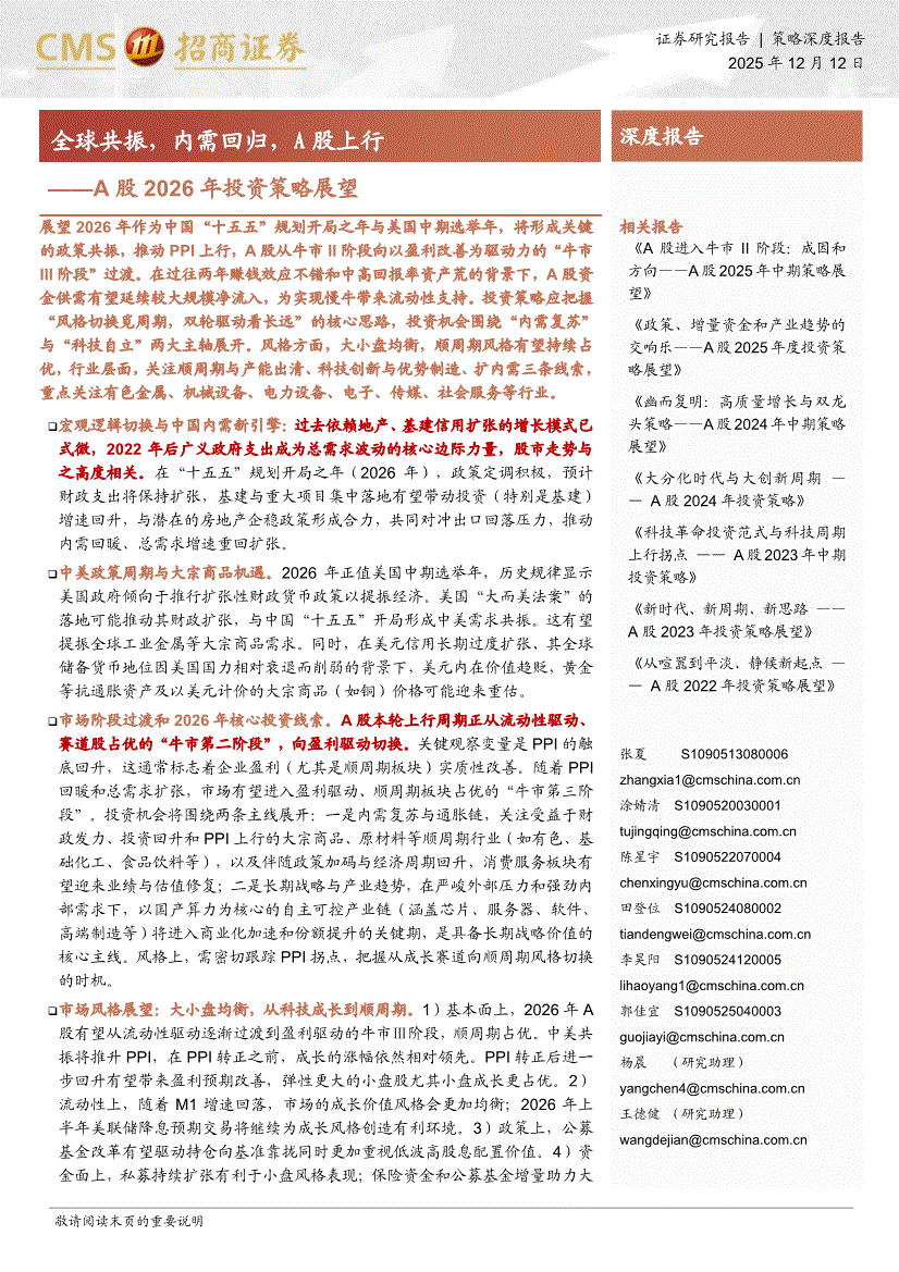 招商证券-A股2026年投资策略展望:全球共振,内需回归,A股上行-251212