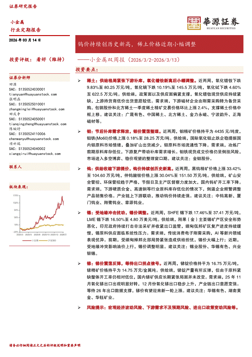 小金属行业:华源证券-小金属行业双周报:钨价持续创历史新高,稀土价格近期小幅调整-260314