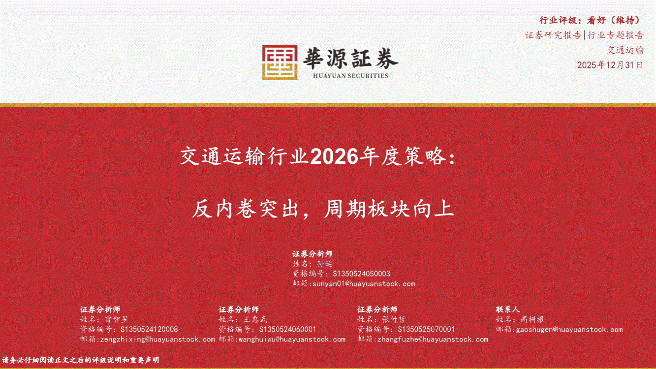 通运输行业:华源证券-交通运输行业2026年度策略:反内卷突出,周期板块向上-251231