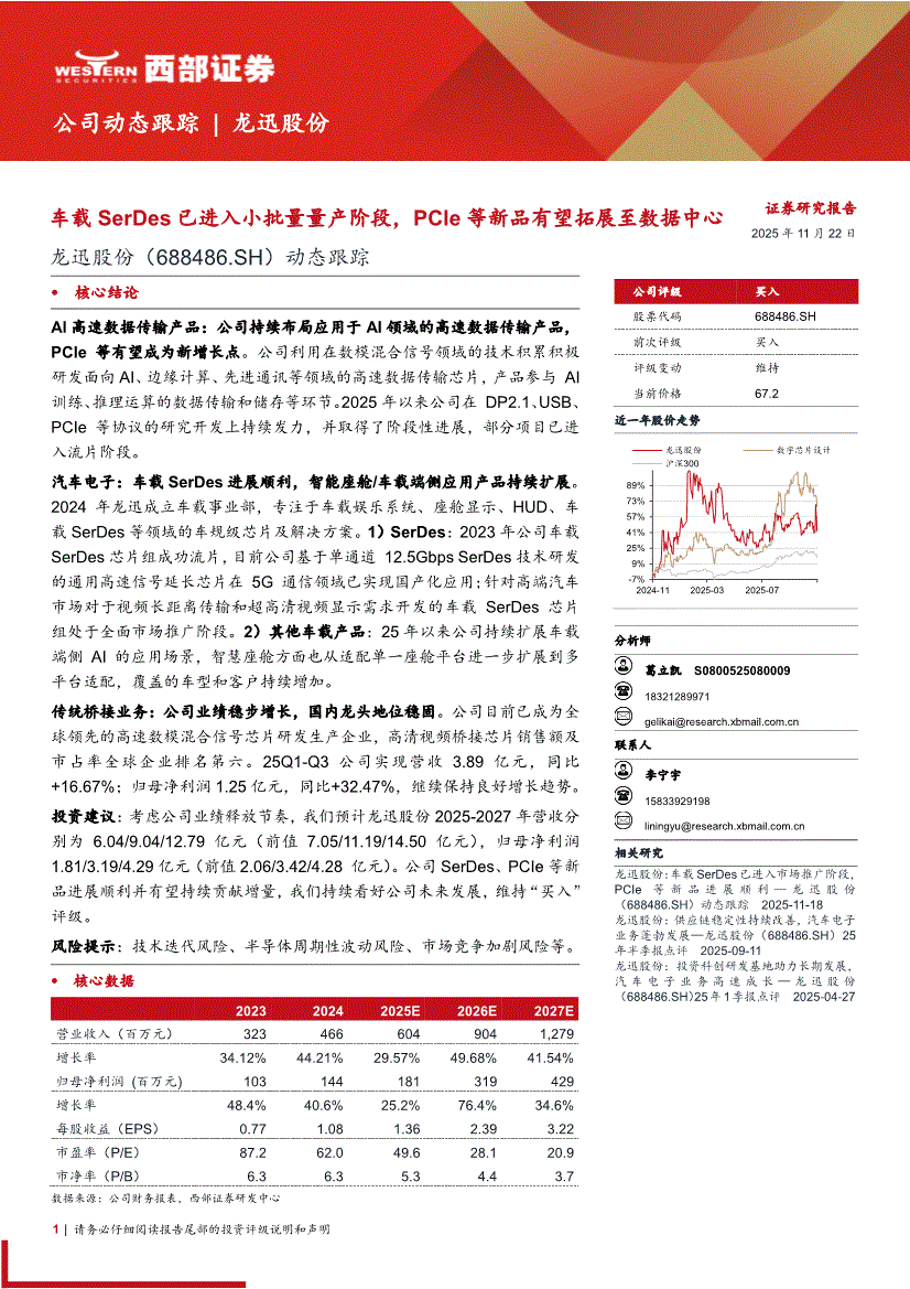 西部证券-龙迅股份-688486-动态跟踪:车载SerDes已进入小批量量产阶段,PCIe等新品有望拓展至数据中心-251122