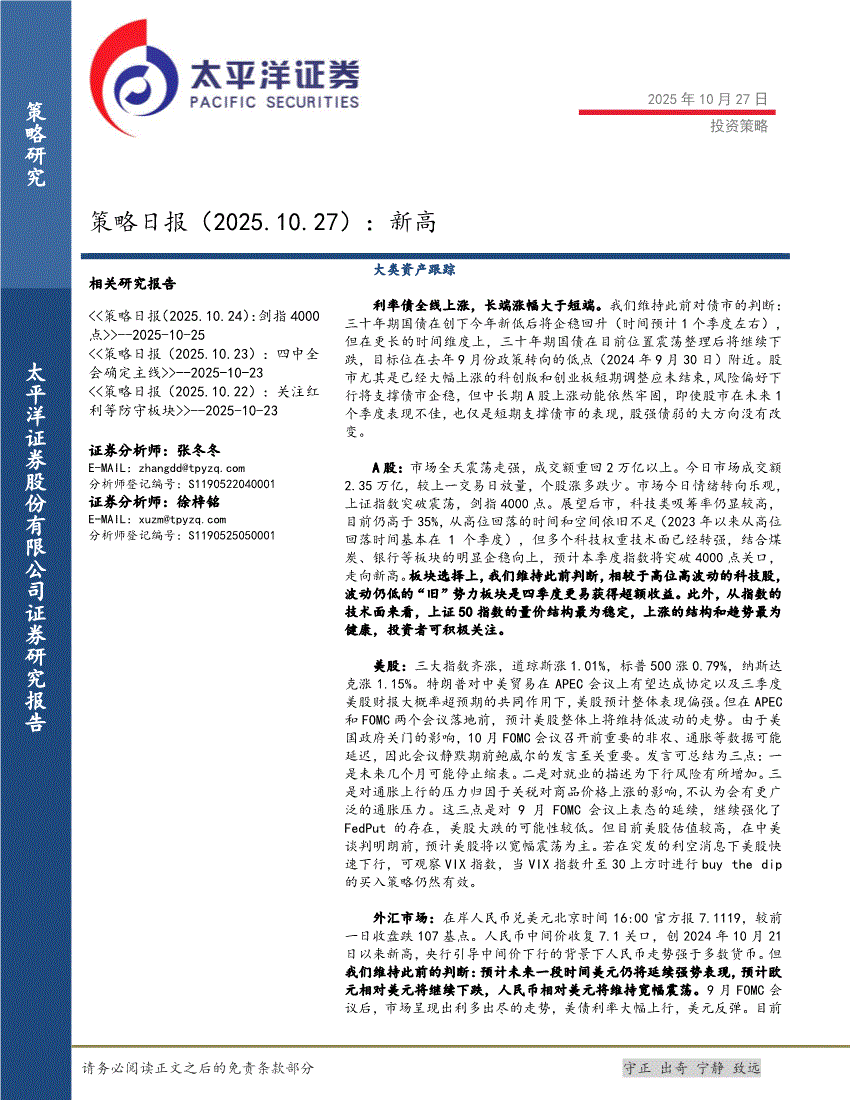 太平洋证券-策略日报:新高-251027