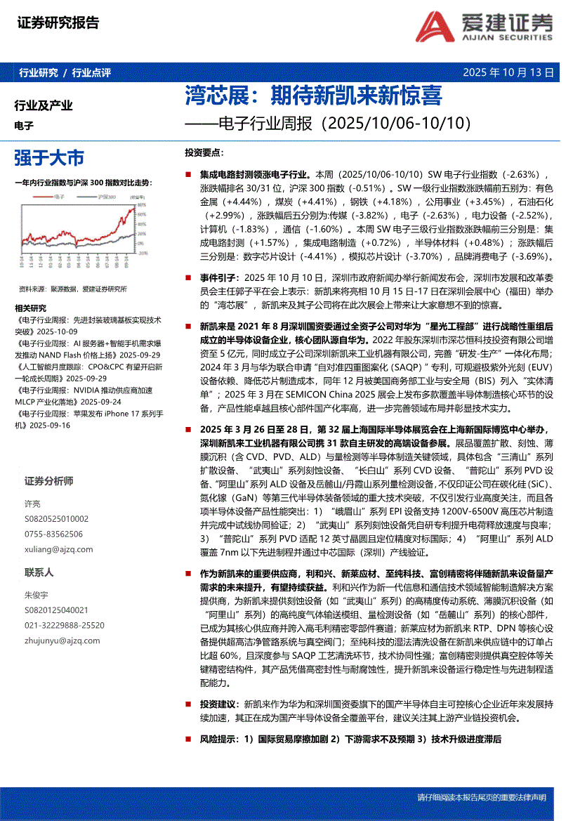 电子行业:爱建证券-电子行业周报:湾芯展,期待新凯来新惊喜-251013