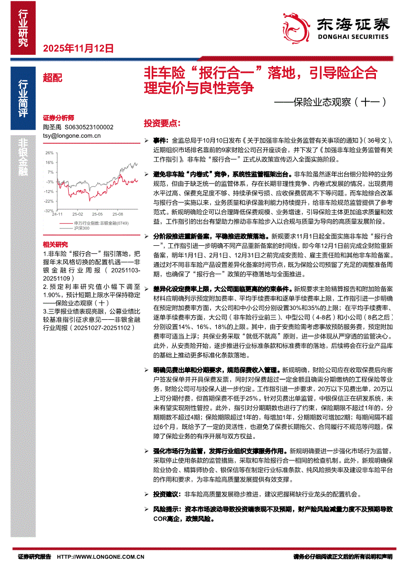 保险行业:东海证券-保险行业业态观察(十一):非车险“报行合一”落地,引导险企合理定价与良性竞争-251112