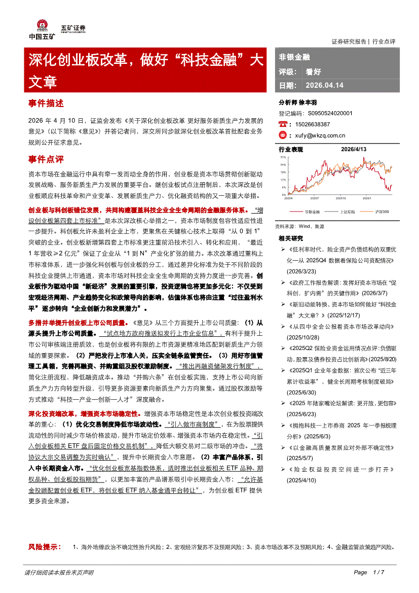 非银金融行业:五矿证券-非银金融行业:深化创业板改革,做好“科技金融”大文章-260414