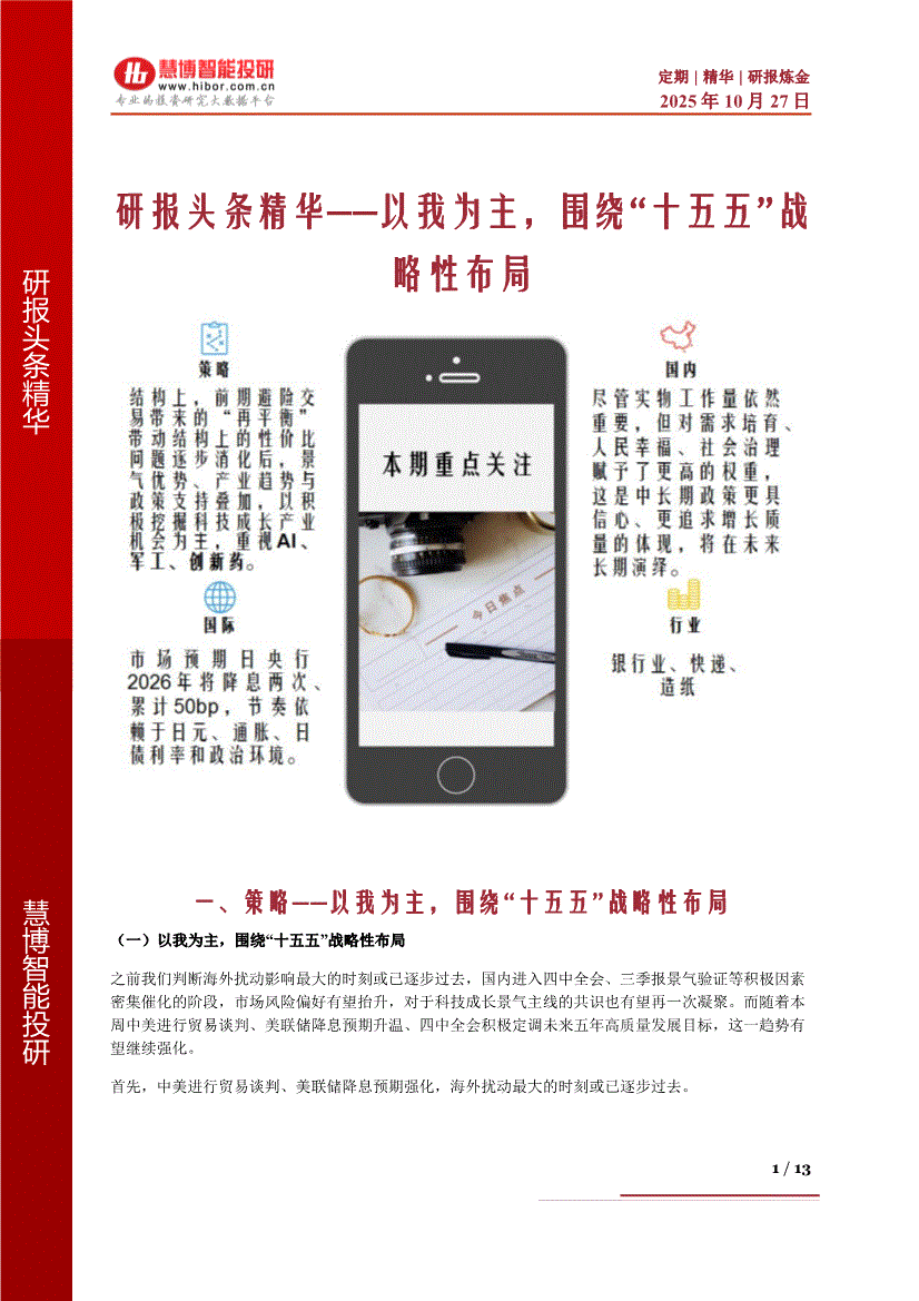 慧博智能投研-慧博研报炼金之研报头条精华:以我为主,围绕“十五五”战略性布局-251027