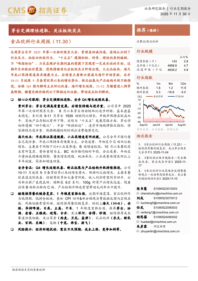 食品饮料行业:招商证券-食品饮料行业周报:茅台定调理性进取,关注板块买点-251130