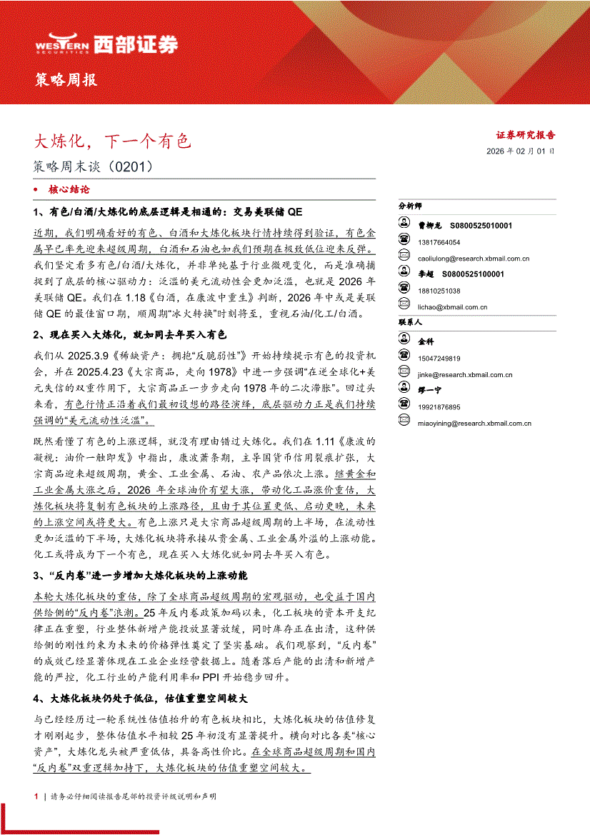 西部证券-策略周末谈:大炼化,下一个有色-260201