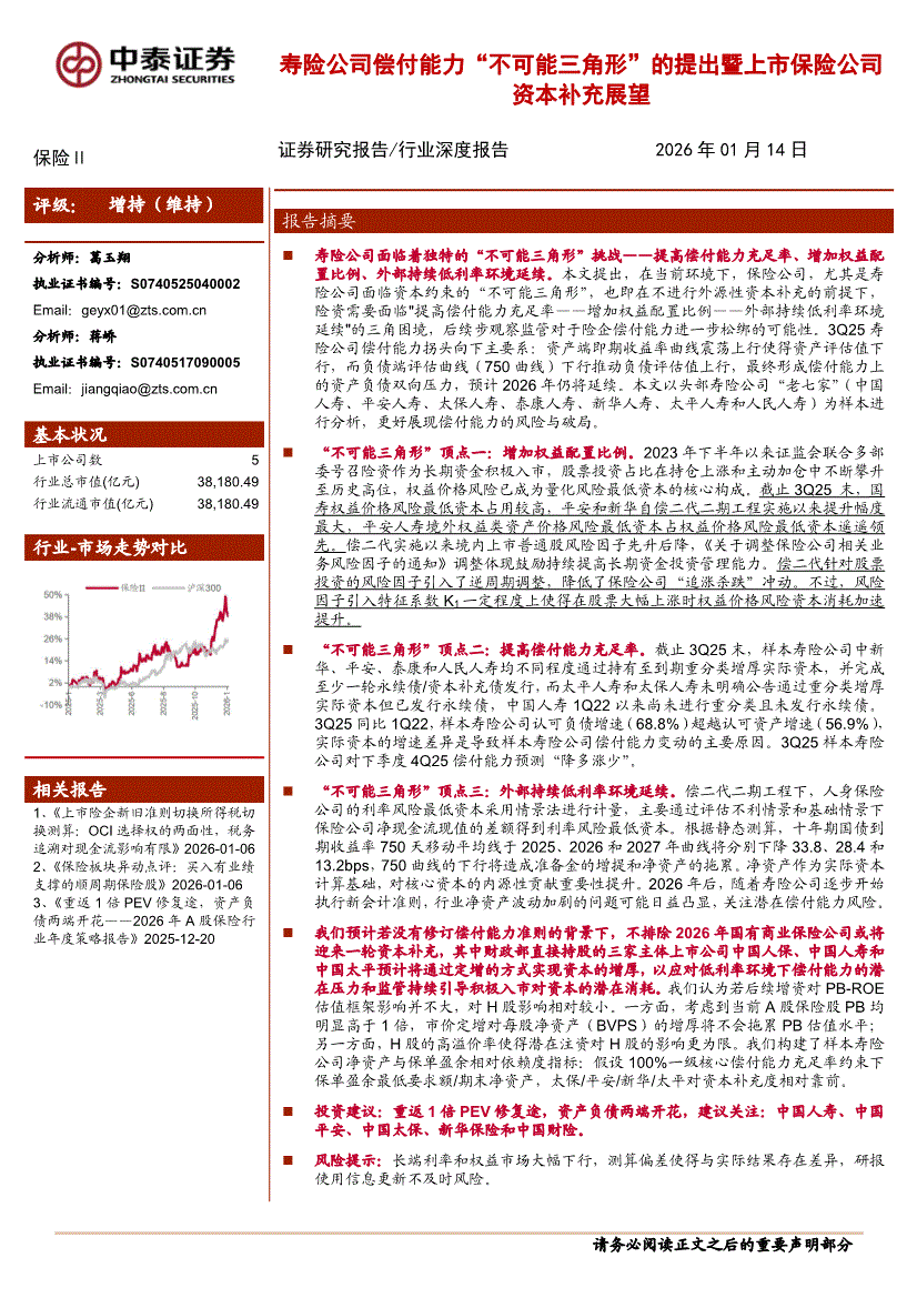 保险行业:中泰证券-保险Ⅱ行业:寿险公司偿付能力“不可能三角形”的提出暨上市保险公司资本补充展望-260114