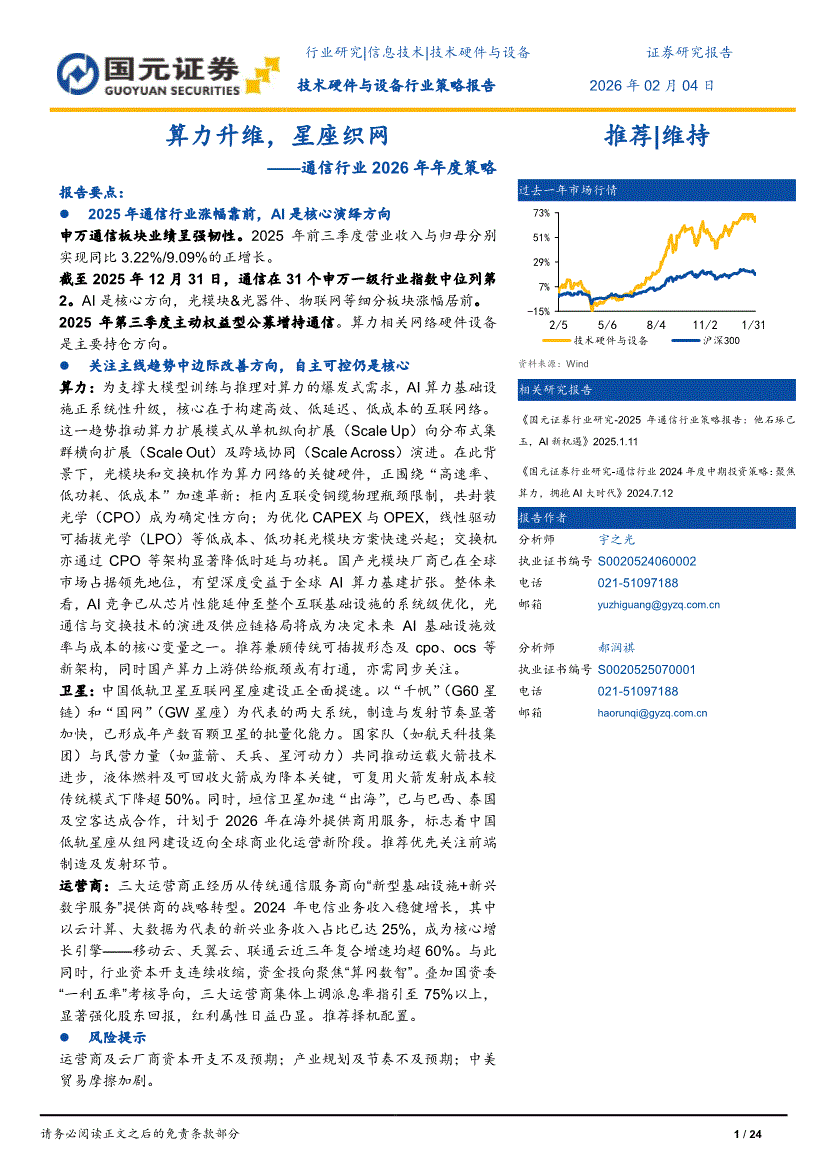 通信行业:国元证券-通信行业2026年度策略报告:算力升维,星座织网-260204