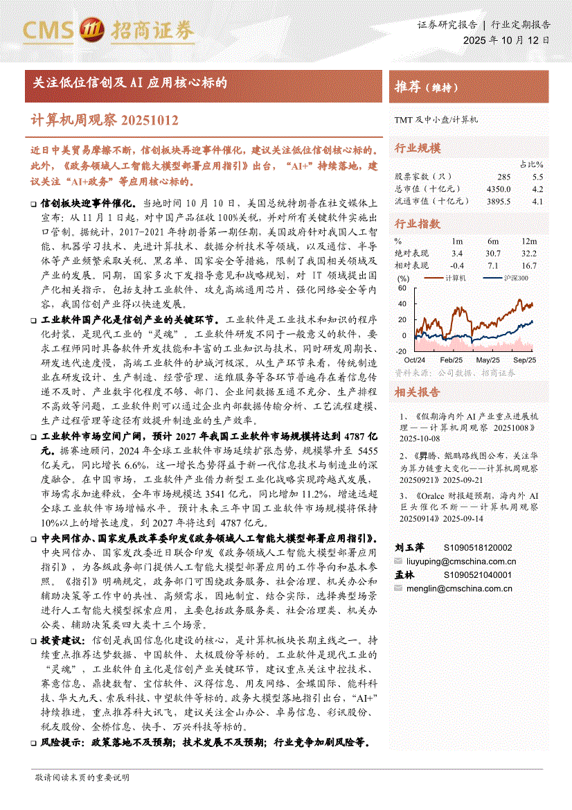 计算机行业:招商证券-计算机行业周观察:关注低位信创及AI应用核心标的-251012
