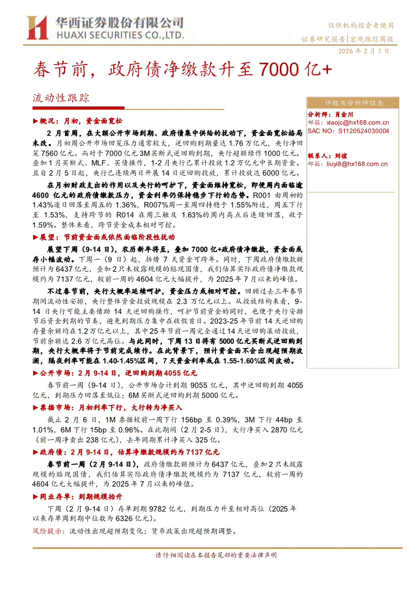 华西证券-流动性跟踪:春节前,政府债净缴款升至7000亿+-260207