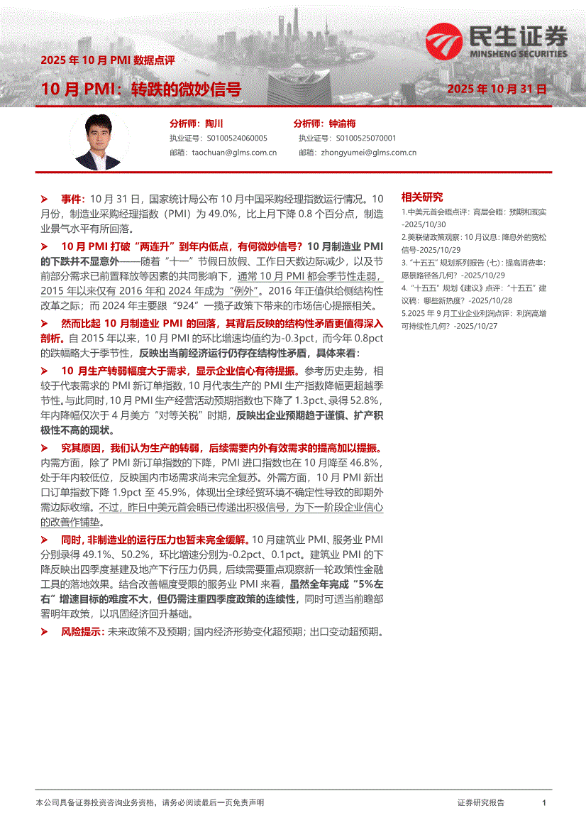 民生证券-2025年10月PMI数据点评:10月PMI,转跌的微妙信号-251031