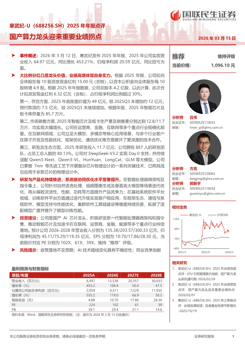 寒武纪:国联民生证券-寒武纪-688256-2025年年报点评:国产算力龙头迎来重要业绩拐点-260315