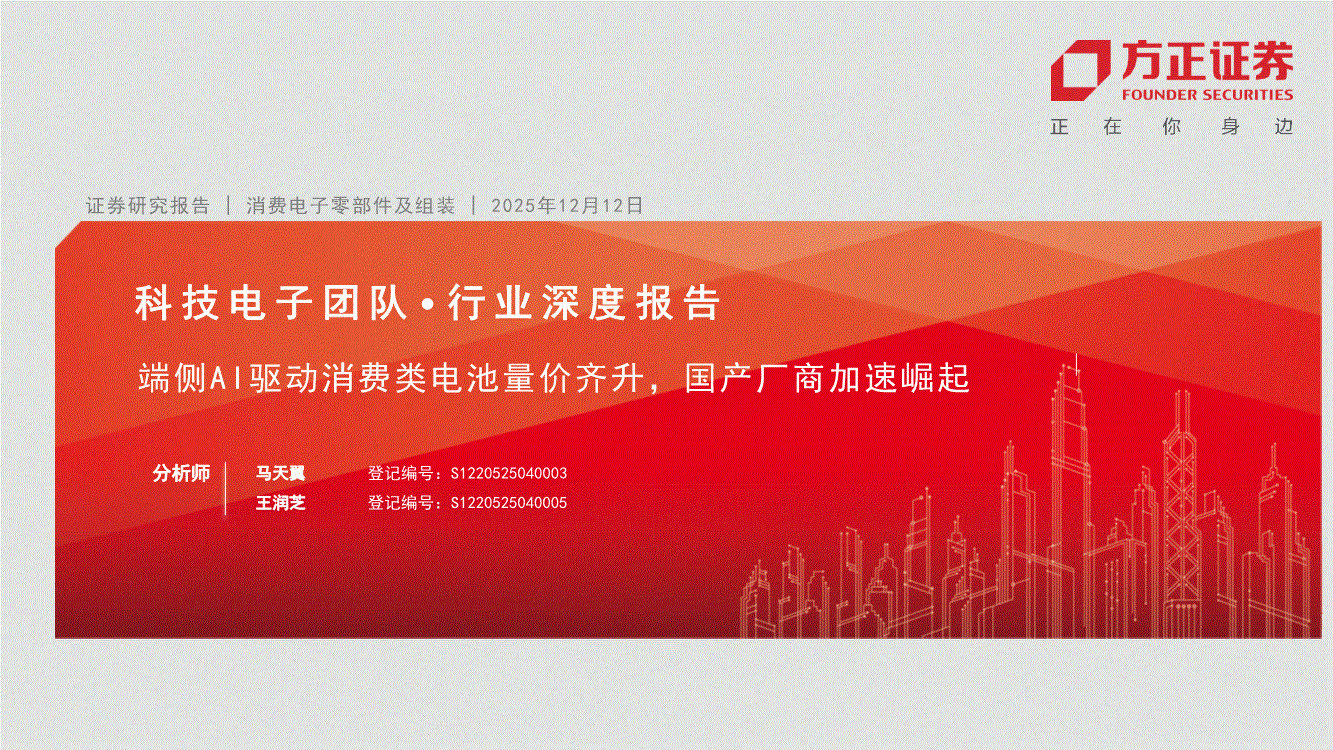 科技电子行业:方正证券-科技电子行业:端侧AI驱动消费类电池量价齐升,国产厂商加速崛起-251212