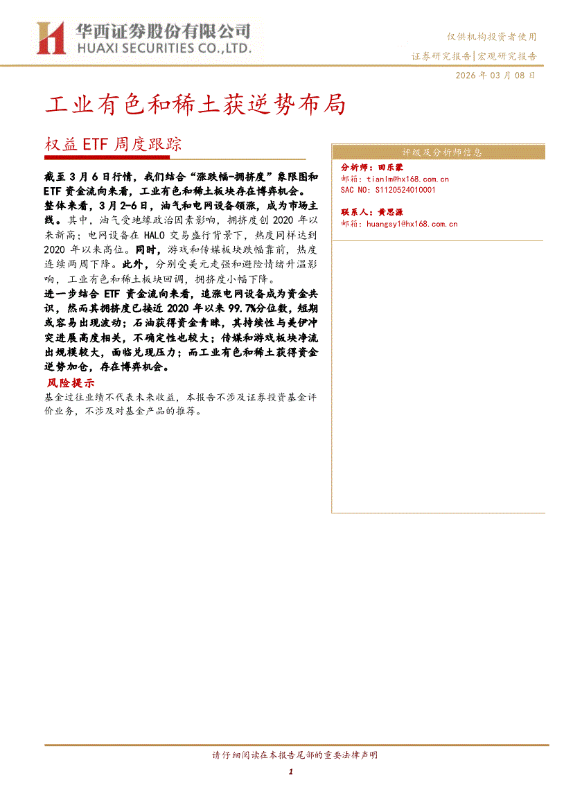 华西证券-权益ETF周度跟踪:工业有色和稀土获逆势布局-260308