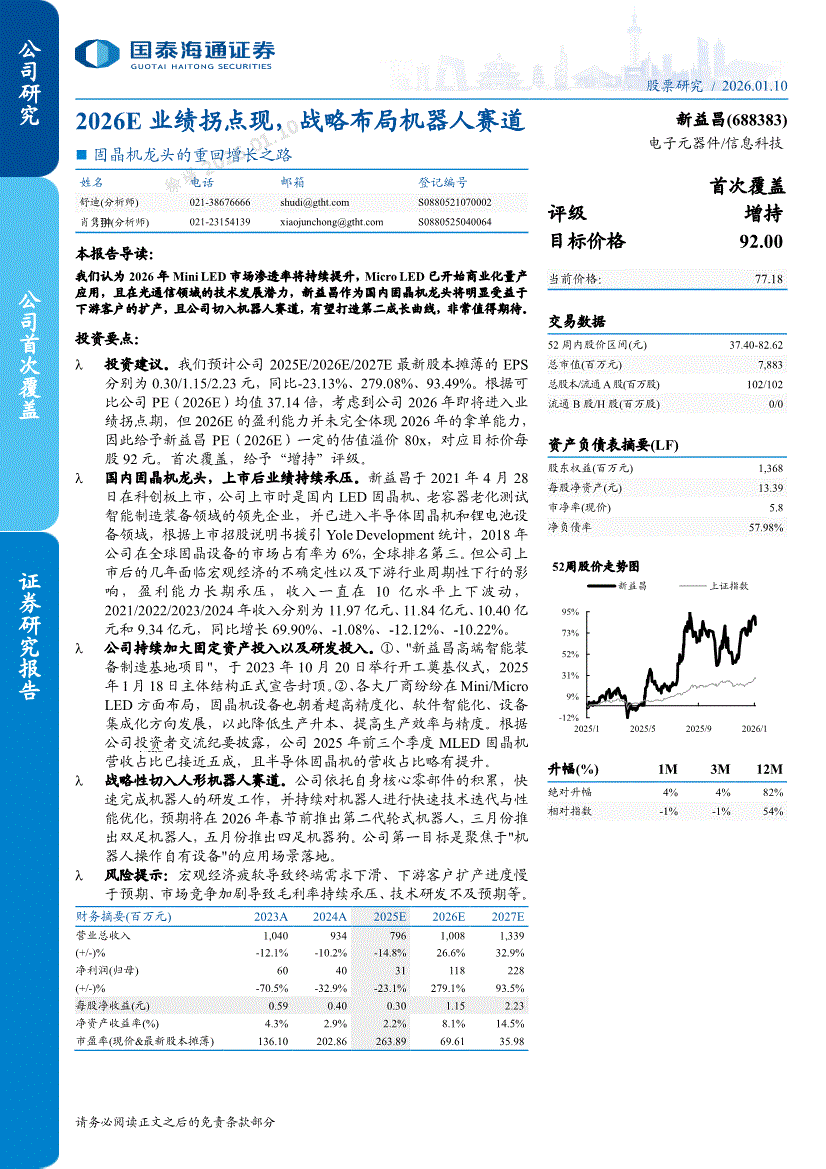 国泰海通证券-新益昌-688383-2026E业绩拐点现,战略布局机器人赛道,固晶机龙头的重回增长之路-260110