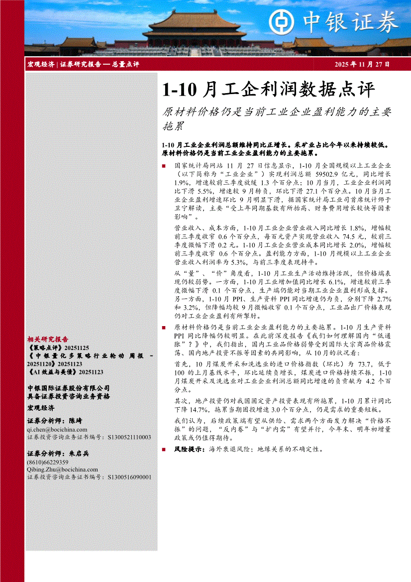 中银国际-1~10月工企利润数据点评:原材料价格仍是当前工业企业盈利能力的主要拖累-251127
