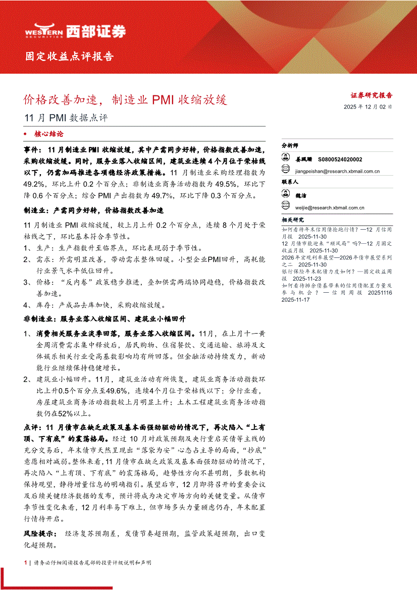 西部证券-11月PMI数据点评:价格改善加速,制造业PMI收缩放缓-251202