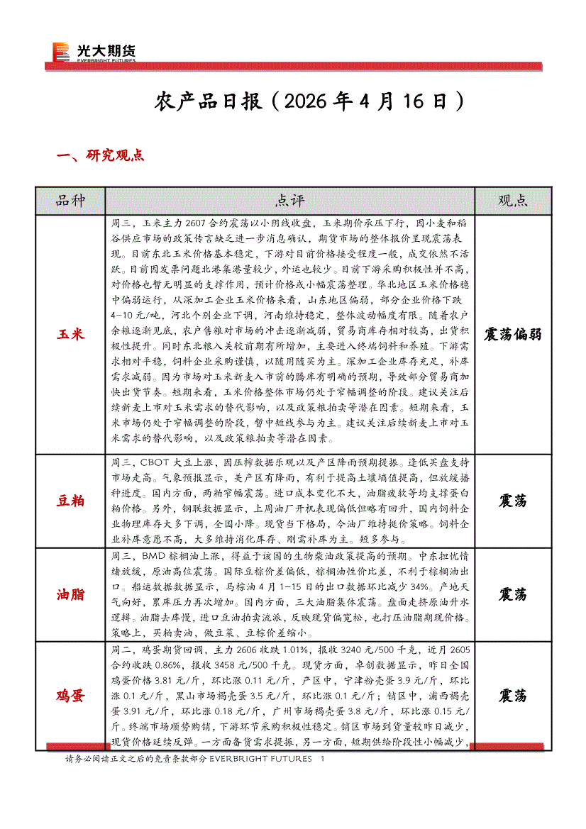 光大期货-农产品日报-260416