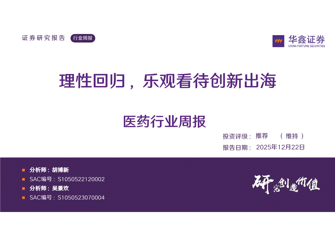 医药行业:华鑫证券-医药行业周报:理性回归,乐观看待创新出海-251222