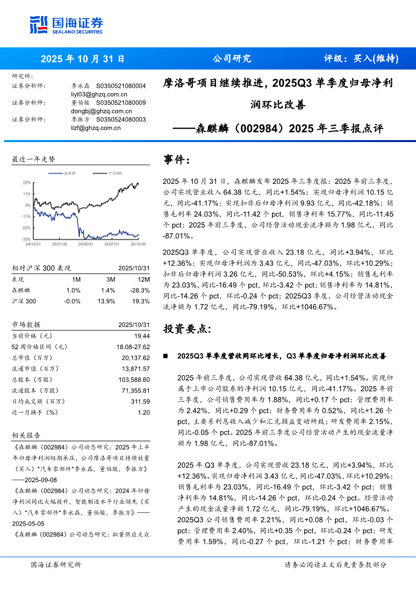 森麒麟:国海证券-森麒麟-002984-2025年三季报点评:摩洛哥项目继续推进,2025Q3单季度归母净利润环比改善-251031