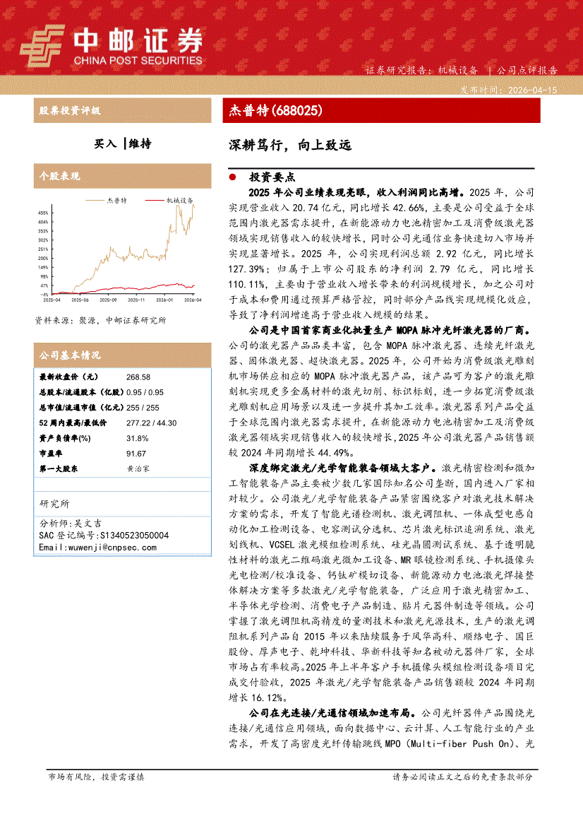 杰普特:中邮证券-杰普特-688025-深耕笃行,向上致远-260415