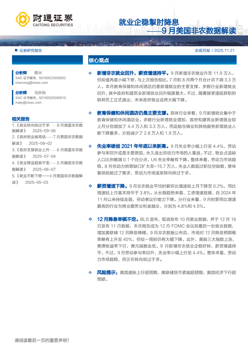 财通证券-就业企稳掣肘降息——9月美国非农数据解读-251121