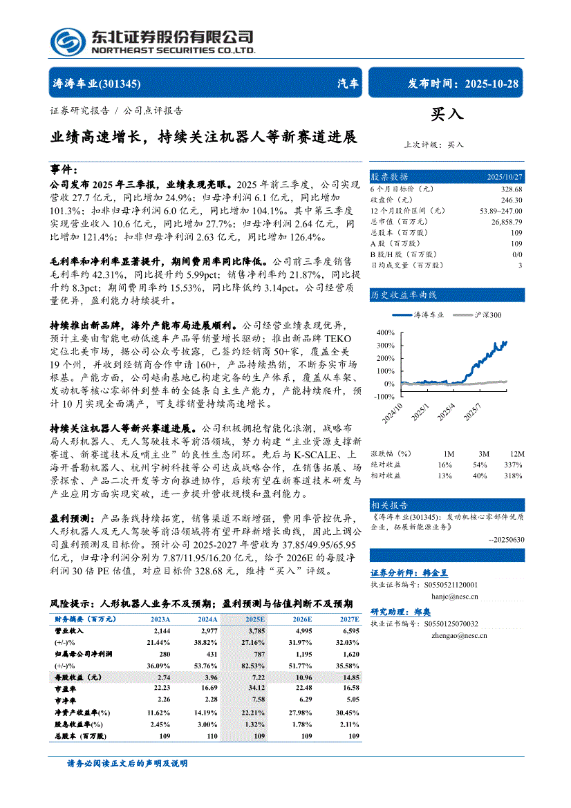 涛涛车业:东北证券-涛涛车业-301345-业绩高速增长,持续关注机器人等新赛道进展-251028