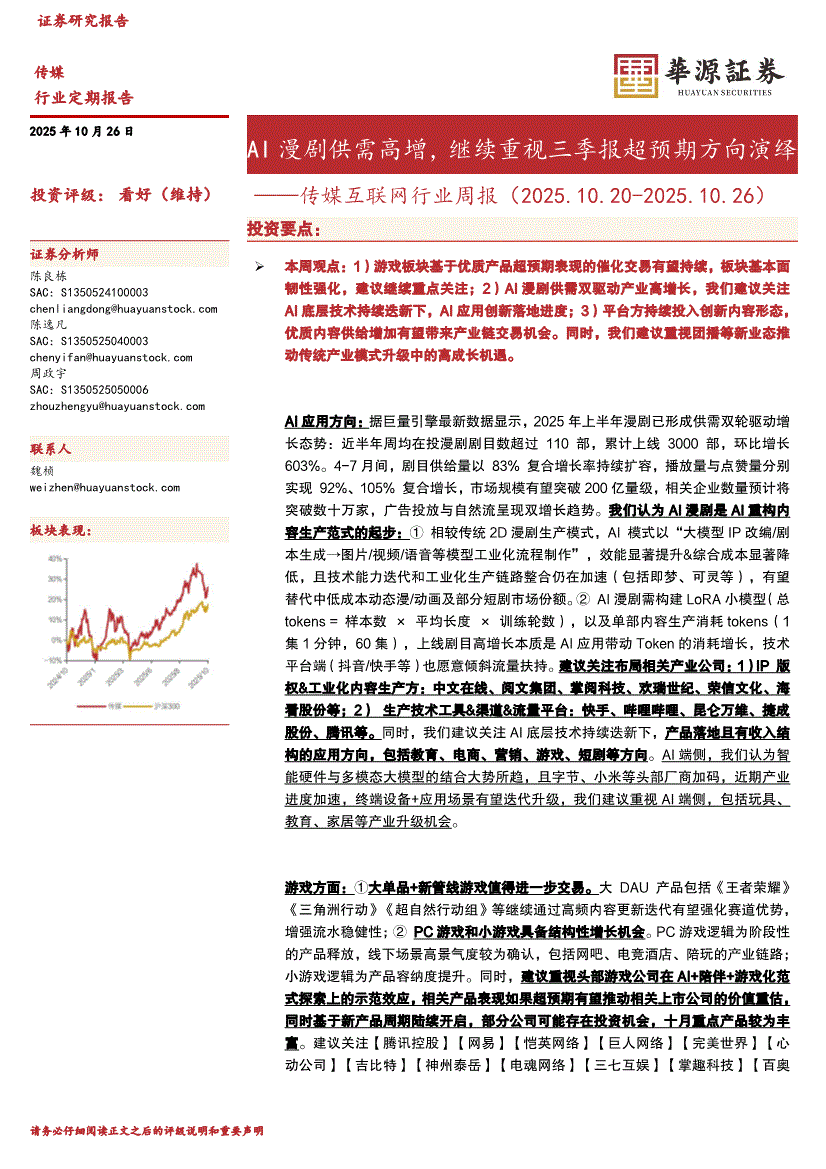 传媒互联网行业:华源证券-传媒互联网行业周报:AI漫剧供需高增,继续重视三季报超预期方向演绎-251026