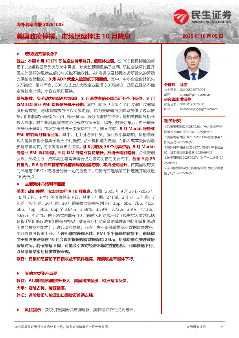 民生证券-海外利率周报:美国政府停摆,市场继续押注10月降息-251005