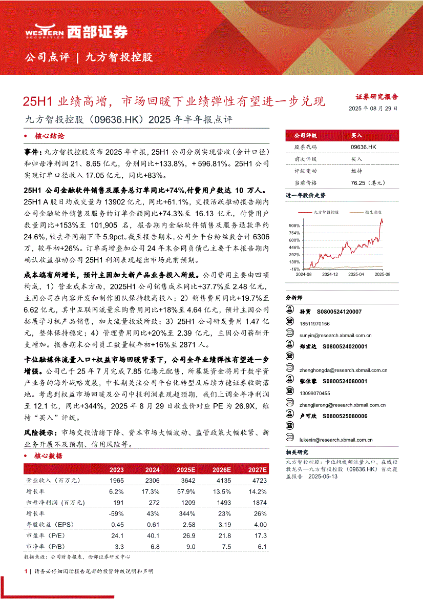 九方智投控股:西部证券-九方智投控股-9636.HK-2025年半年报点评:25H1业绩高增,市场回暖下业绩弹性有望进一步兑现-250829