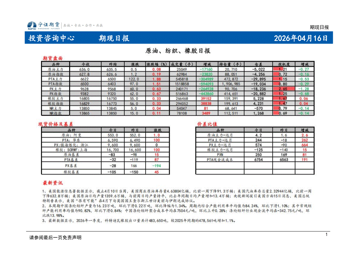 宁证期货-期现日报-260416