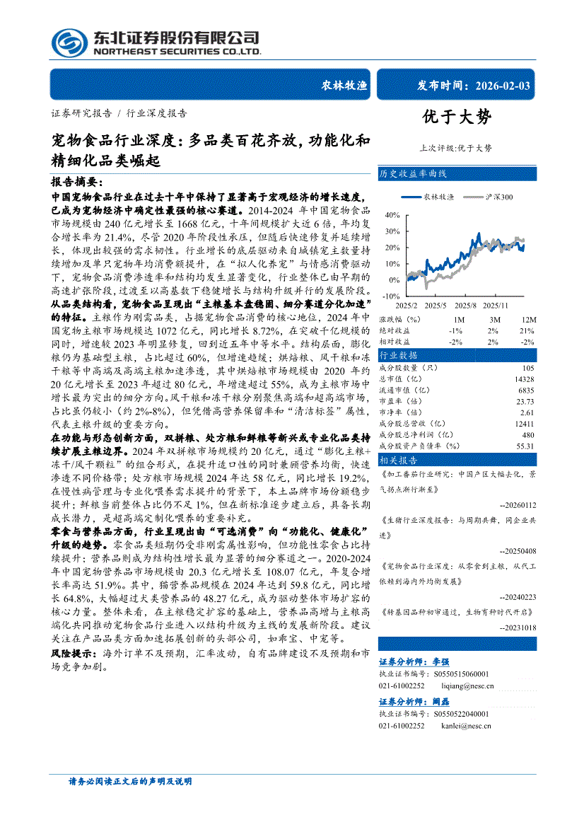 宠物食品行业:东北证券-宠物食品行业深度:多品类百花齐放,功能化和精细化品类崛起-260203
