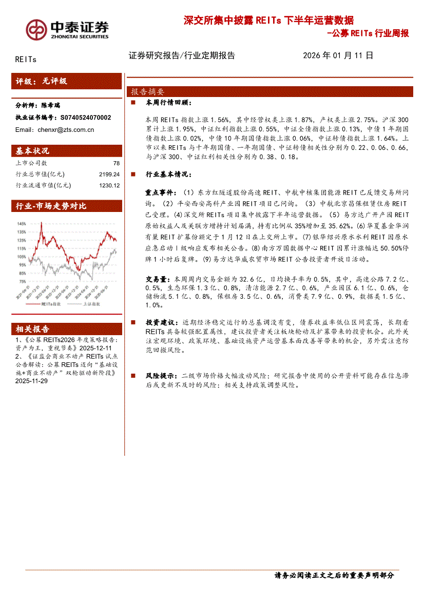 REITs行业:中泰证券-公募REITs行业周报:深交所集中披露REITs下半年运营数据-260111