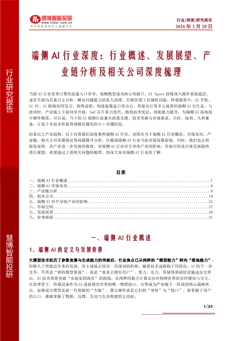端侧AI行业:慧博智能投研-端侧AI行业深度:行业概述、发展展望、产业链分析及相关公司深度梳理-260228