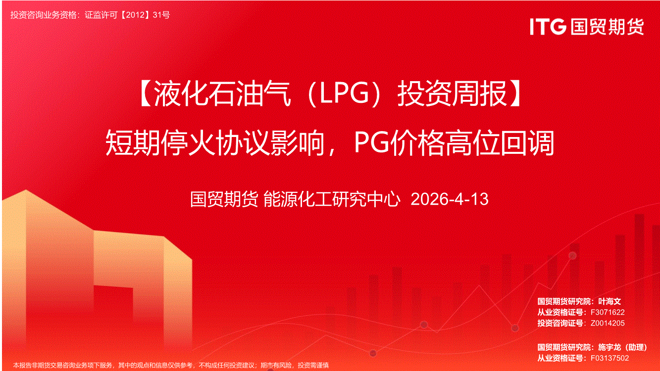 国贸期货-【液化石油气(LPG)投资周报】短期停火协议影响,PG价格高位回调-260413