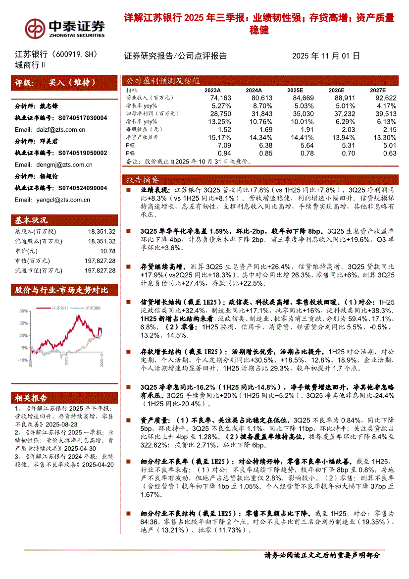 江苏银行:中泰证券-江苏银行-600919-详解江苏银行2025年三季报:业绩韧性强;存贷高增;资产质量稳健-251101