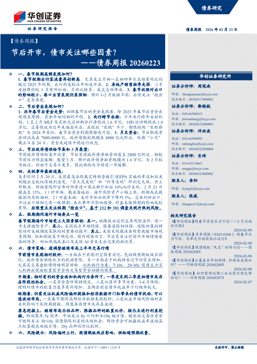 华创证券-债券周报:节后开市,债市关注哪些因素?-260223