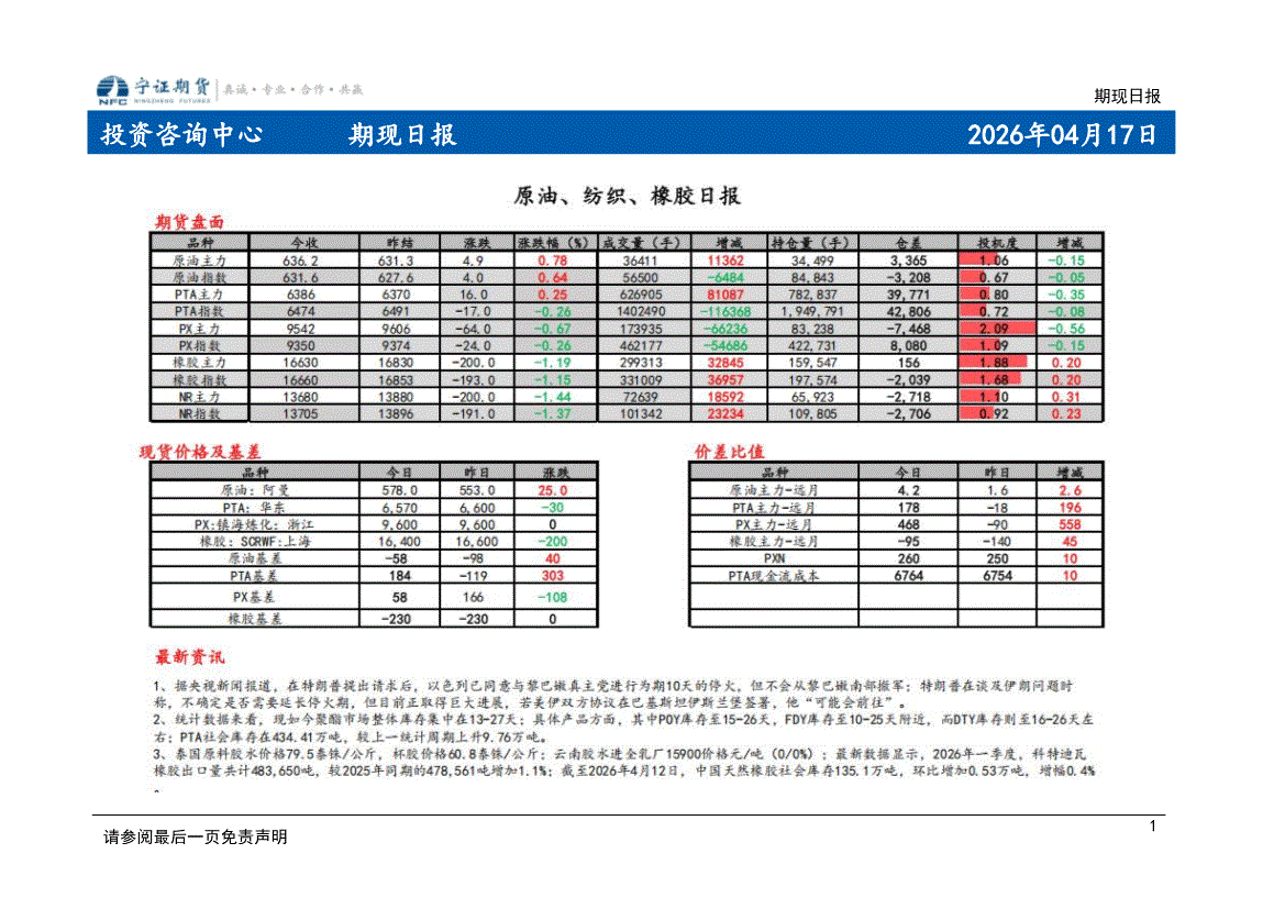 宁证期货-原油期货周报:原油上行动能仍存-260420