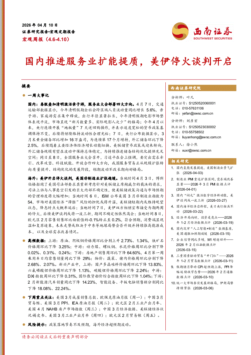 西南证券-宏观周报(4.6~4.10):国内推进服务业扩能提质,美伊停火谈判开启-260410