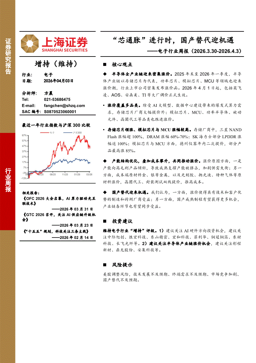 电子行业:上海证券-电子行业周报:“芯通胀”进行时,国产替代迎机遇-260403