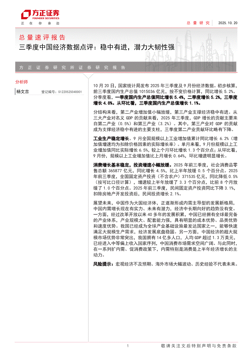 方正证券-总量速评报告:三季度中国经济数据点评,稳中有进,潜力大韧性强-251020