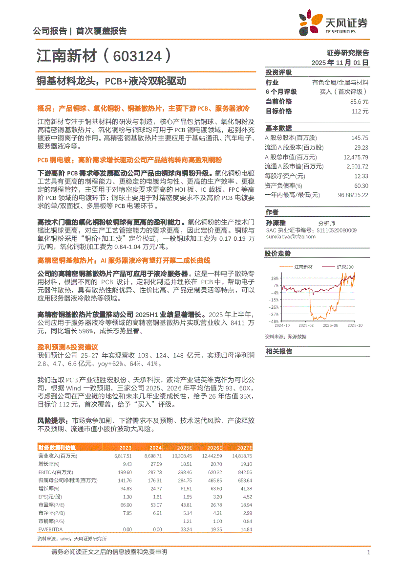 江南新材:天风证券-江南新材-603124-铜基材料龙头,PCB+液冷双轮驱动-251101